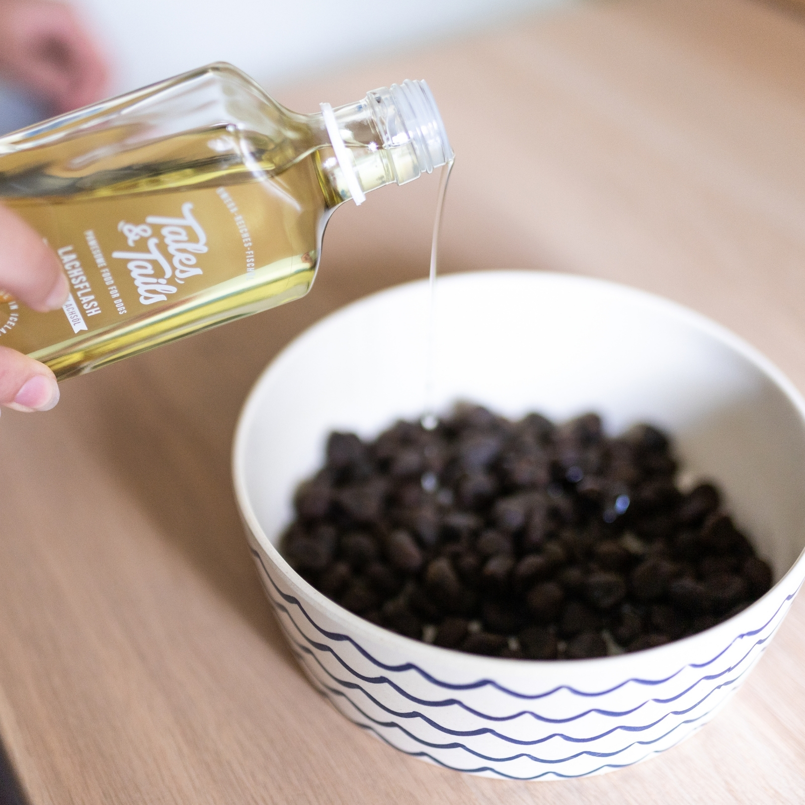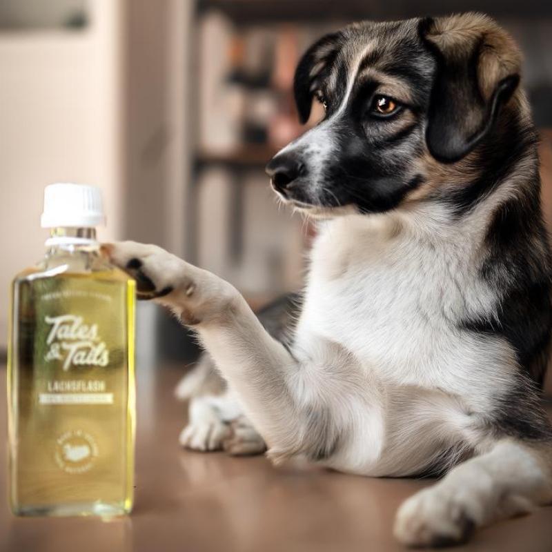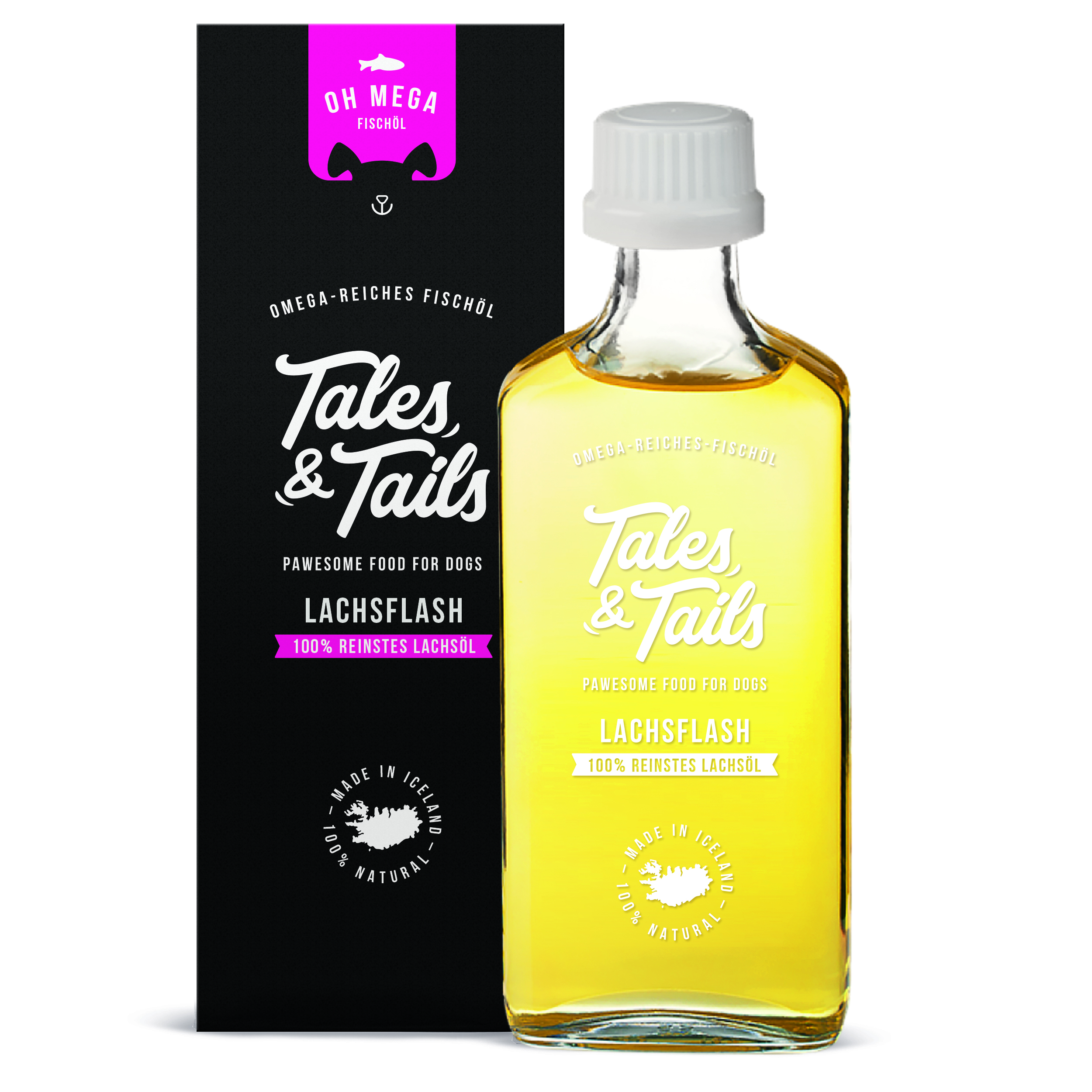 Unser leckeres Lachsöl besteht aus über 15 Omega-3 und Omega-6 Fettsäuren und einem hohen Anteil an DHA und EPA und ist damit ein absolutes Premium Fischöl für deinen Hund. Unser Lachsöl hat das Verhältnis 4: 1 (Omega-3: Omega-6).