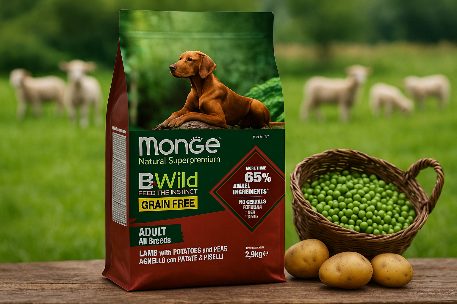 Monge Bwild Lamm,Kartoffeln & Erbsen ist ein getreidefreies,ausgewogenes Alleinfuttermittel für erwachsene Hunde