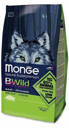 Das BWild Low Grain Adult Wildschwein von der Marke Monge ist ein getreidearmes Trockenfutter mit Wildschwein für erwachsene Hunde.