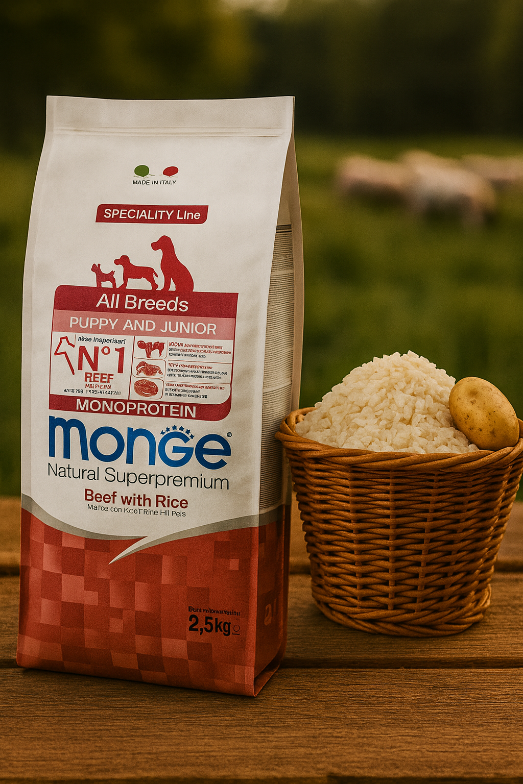 Monge Puppy & Junior Rind mit Reis ist ein Monoproteinfutter für Welpen und Junghunde