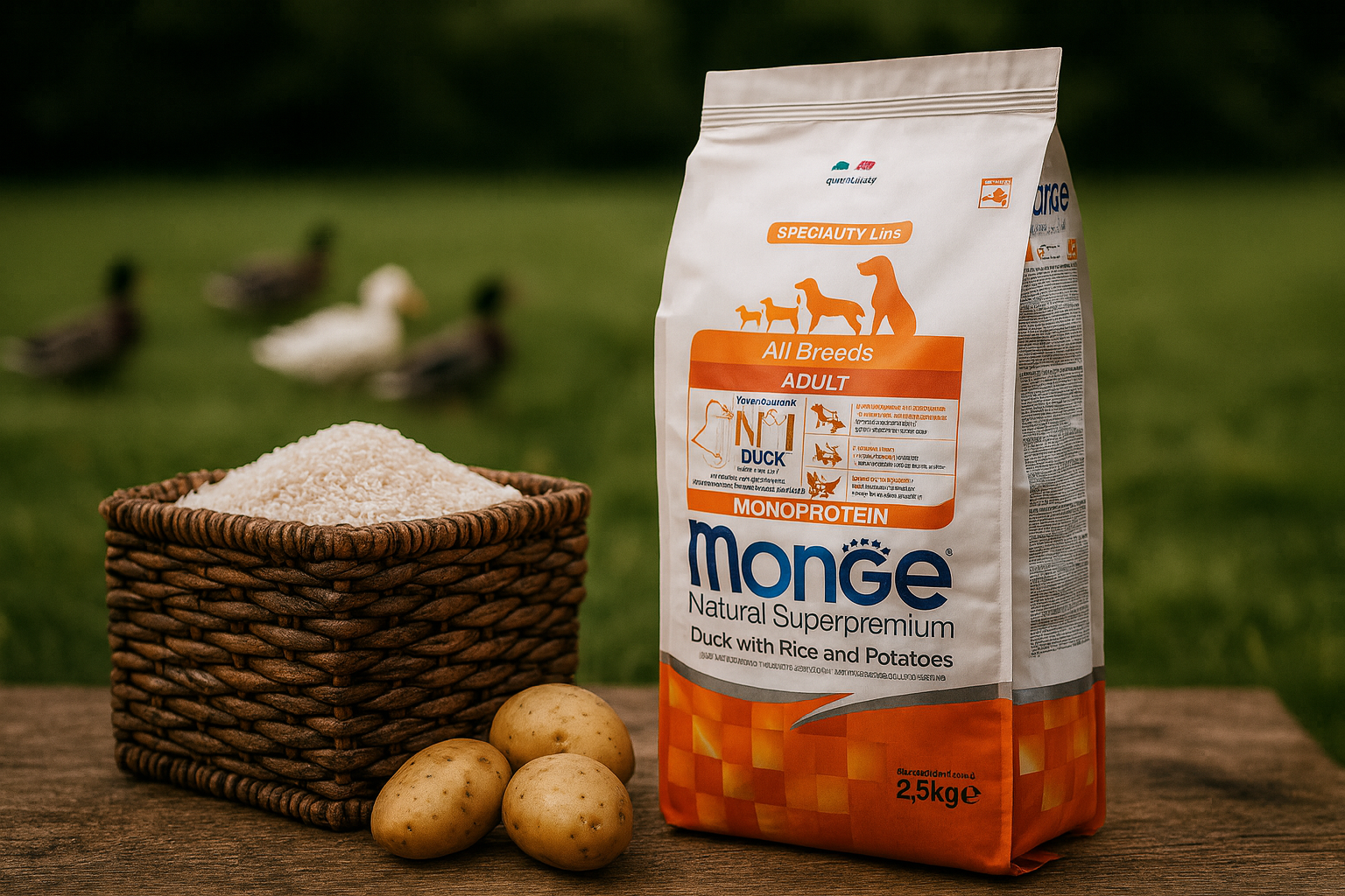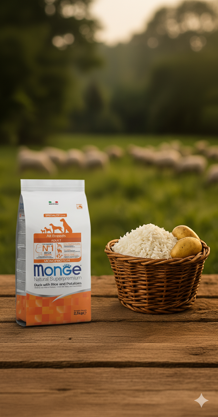 Monge Natural Superpremium Ente,Reis & Kartoffel ist eine Vollnahrung für erwachsene Hunde aller Rassen